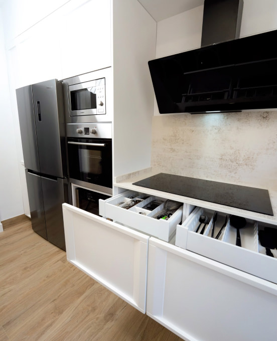Personaliza tu cocina con electrodomésticos integrados que se adaptan a tu diseño y necesidades.